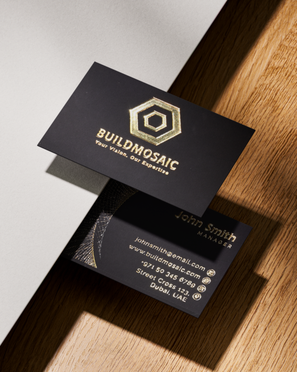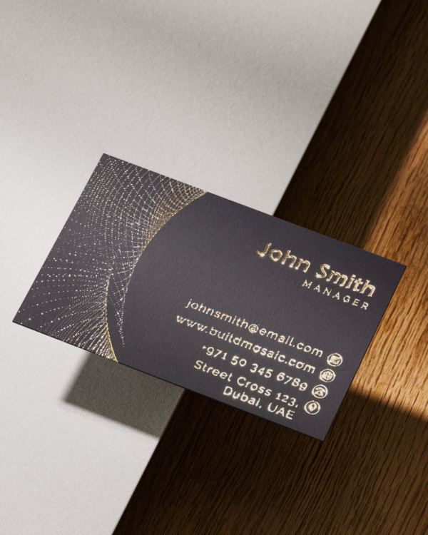 Every card is crafted with care using cutting-edge printing methods to highlight your design with exceptional clarity and depth .Whether it’s your logo, company name, or design elements, the 3D gold foil adds depth, shine, and a luxurious touch that enhances your brand identity. Ideal for executives, creatives, luxury brands, or anyone looking to elevate their professional image.